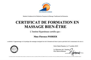 CERTIFICAT DE FORMATION EN MASSAGE BIEN ÊTRE