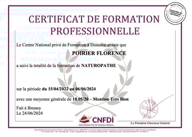 CERTIFICAT DE FORMATION EN NATUROPATHIE